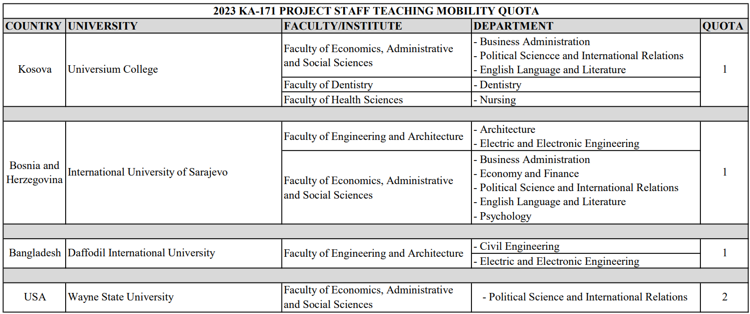 Within the scope of our project numbered 2023-1-TR01-KA171-HED-000164429, applications for Erasmus+ Incoming Staff Mobility for Teaching at Istanbul Gelisim University will be accepted via email between 08.12.2025 and 22.12.2025 through the address “udio-k.gelisim.edu.tr” Staff members who wish to participate in staff mobility must submit the application form and required documents to our Office via udio-k.gelisim.edu.tr no later than 22.12.2025.