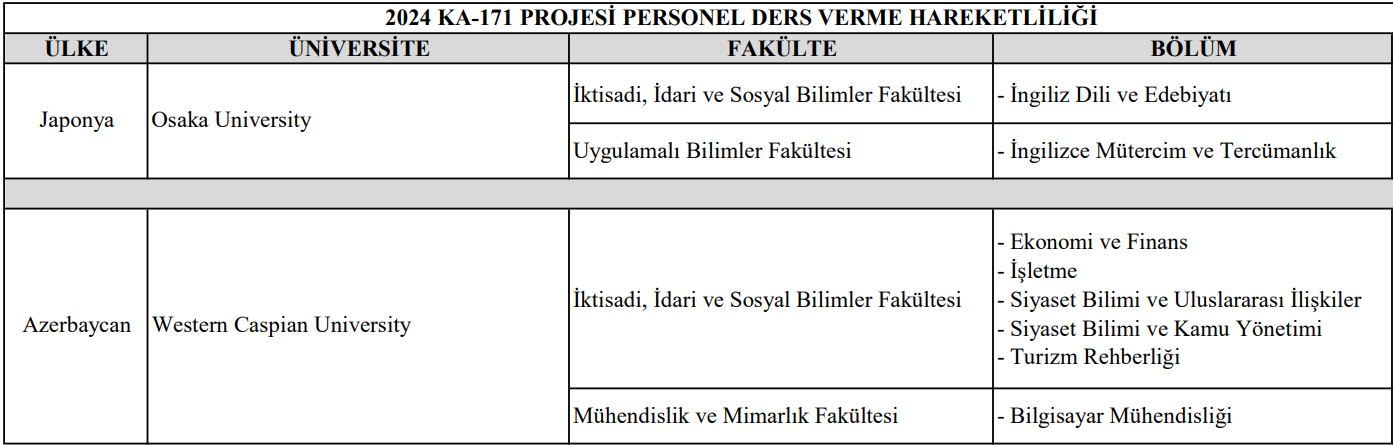 2024 Proje Yılı KA-171 ERASMUS+ Personel Ders Verme Hareketliliği Başvuruları